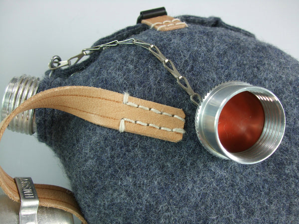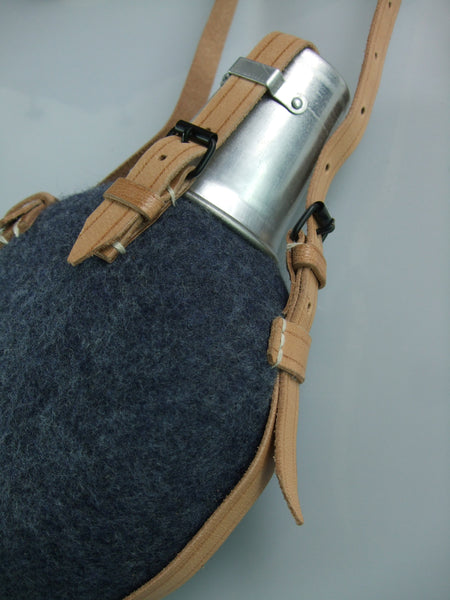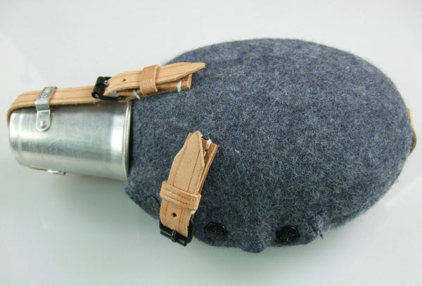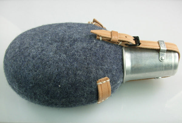 WWII German Luftwaffe LW Canteen, Blue-grey Wool Felt Cover, Aluminium Cup Set
